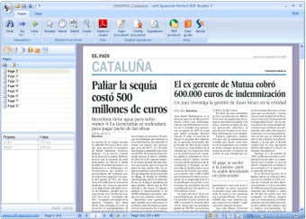 Consideración aparte merece el menú principal, desde el cual Perfect PDF Reader puede guardar el documento como texto puro o imágenes sueltas, así como imprimir o realizar un envío por correo electrónico. La capacidad para guardar se extiende a los formularios y a los datos que hayas introducido en ellos, algo que Adobe Reader no es capaz de hacer.
